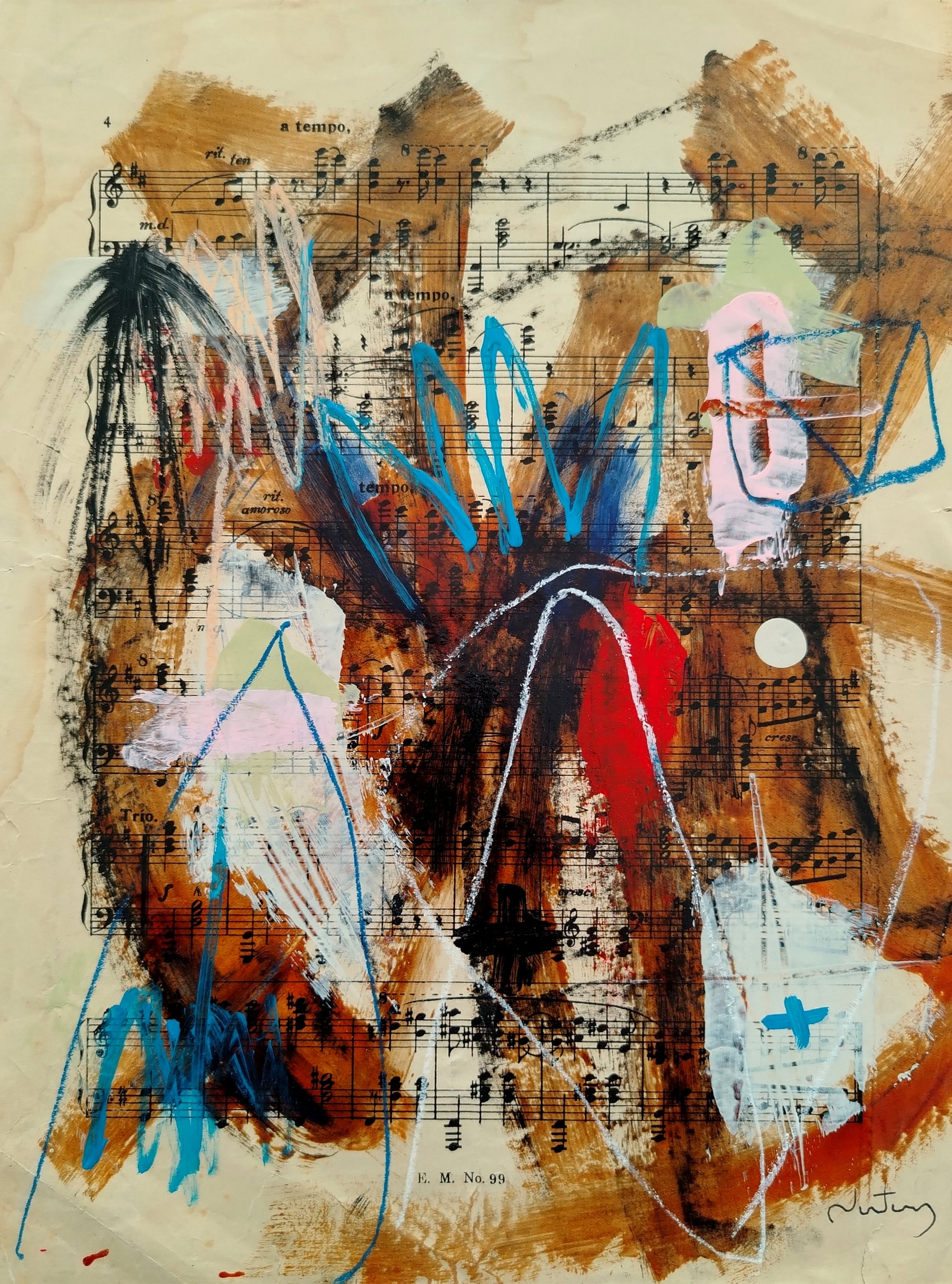 A series of 14 hand-intervened works created on original 1930s music scores, whose natural aged tone contrasts with the enamel and acrylic applied by Ulises Platas. Inspired by the Isthmus traditional son “Son Paulina,” each piece is completely unique.