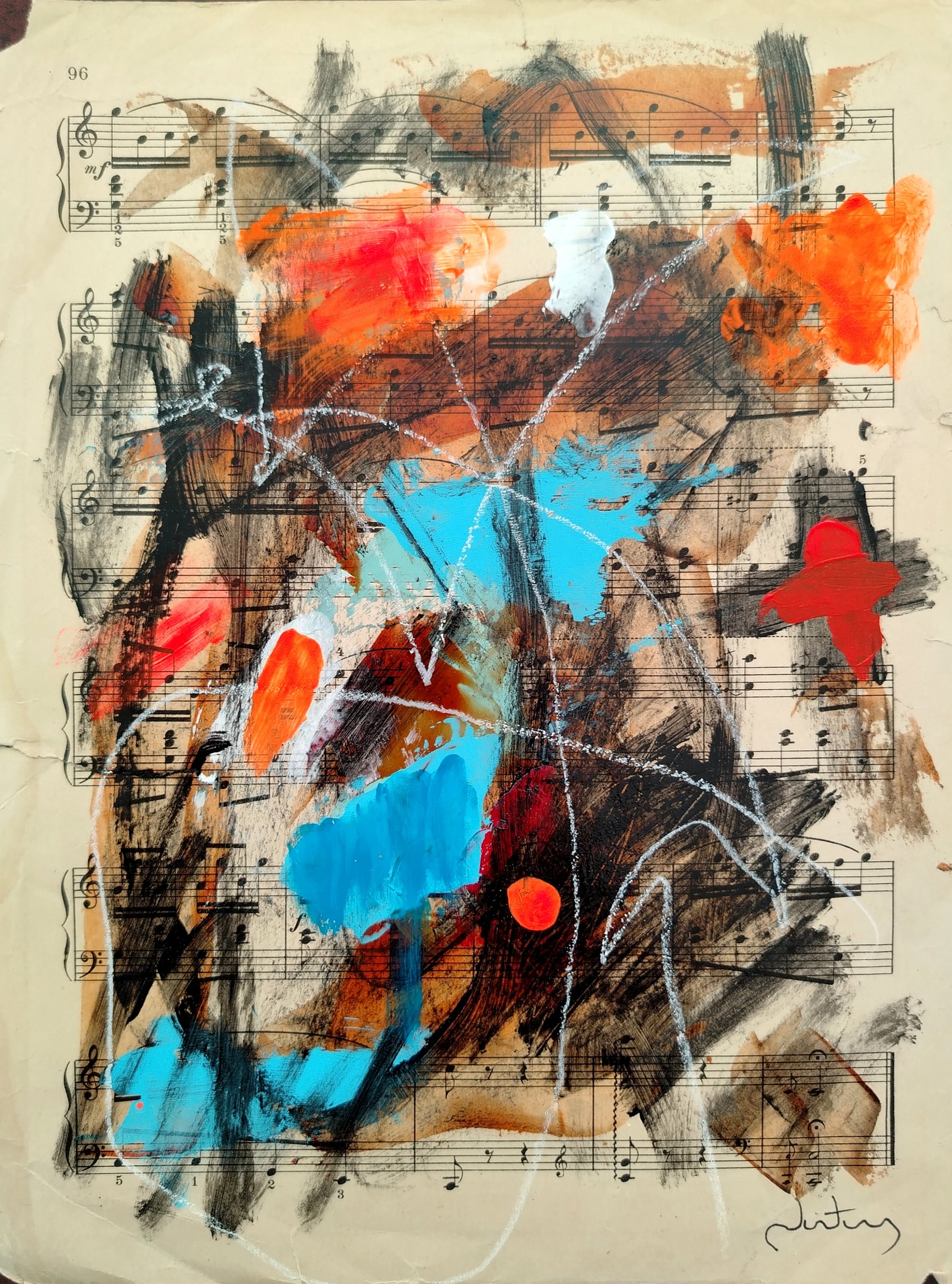A series of 14 hand-intervened works created on original 1930s music scores, whose natural aged tone contrasts with the enamel and acrylic applied by Ulises Platas. Inspired by the Isthmus traditional son “Son Paulina,” each piece is completely unique.