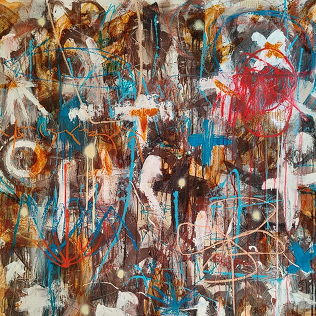 Abstract: A spontaneous explosion of marks and color, expressing pure artistic impulse.