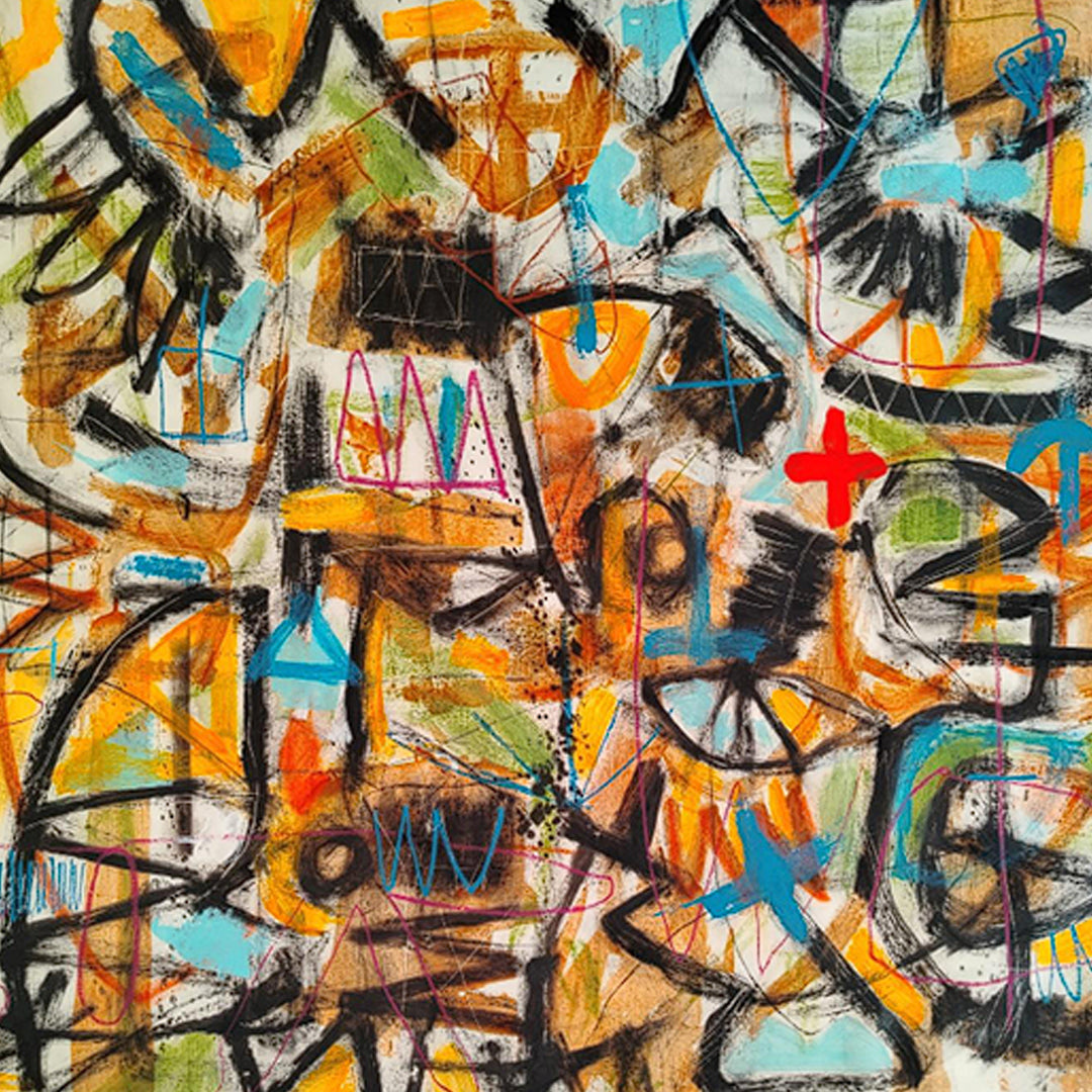 Abstract: A powerful invocation of raw symbolism and expressive marks, where forms emerge and dissolve with magnetic tension.