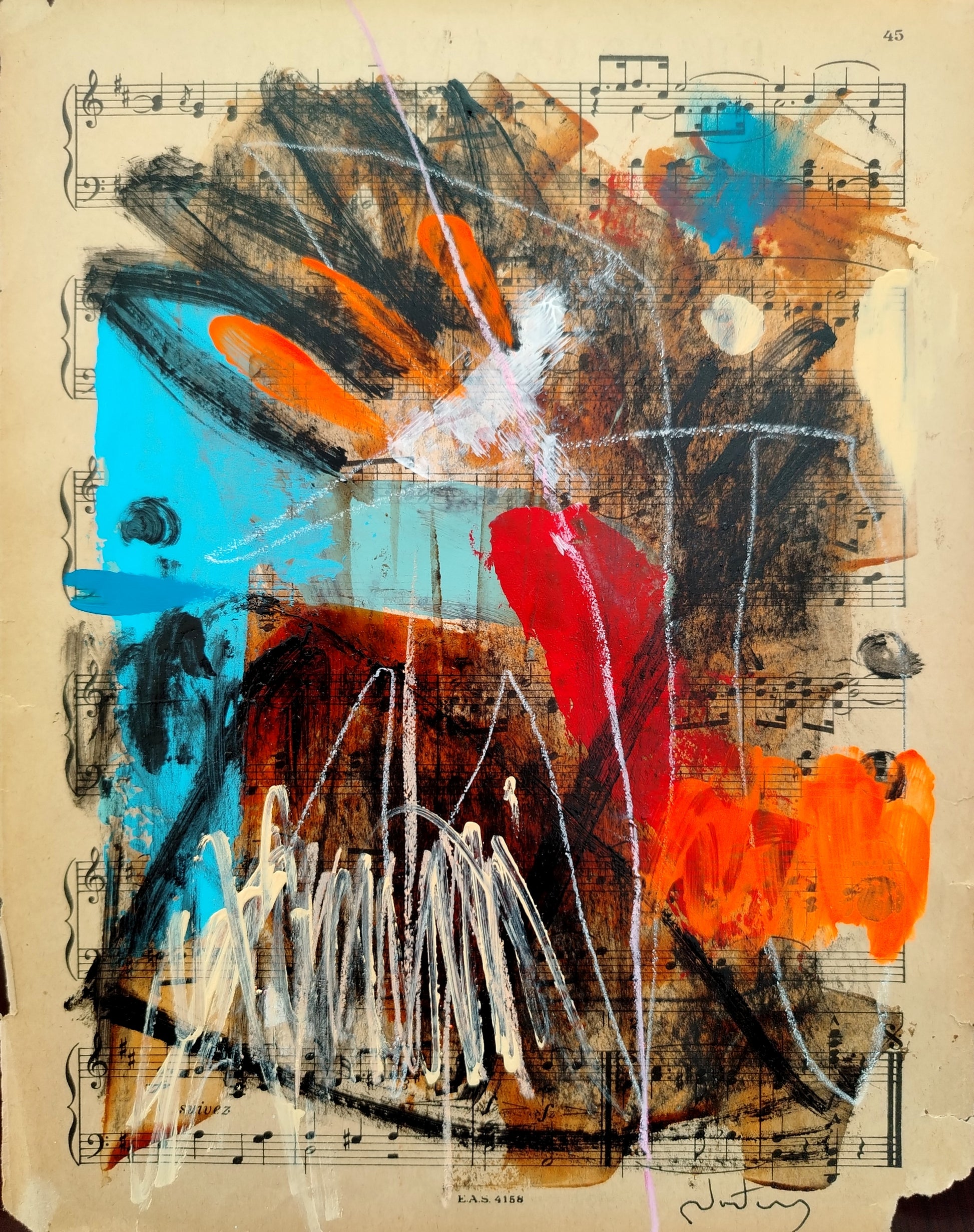 Technique: Mixed media on original music scores (1930s)