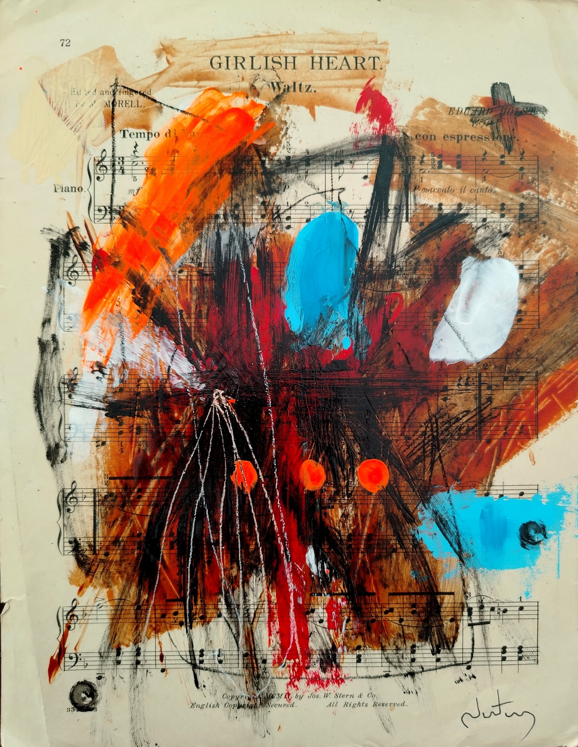 A series of 14 hand-intervened works created on original 1930s music scores, whose natural aged tone contrasts with the enamel and acrylic applied by Ulises Platas. Inspired by the Isthmus traditional son “Son Paulina,” each piece is completely unique.
