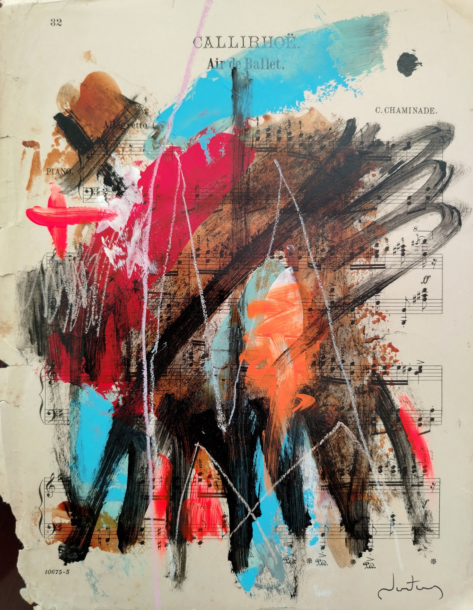 A series of 14 hand-intervened works created on original 1930s music scores, whose natural aged tone contrasts with the enamel and acrylic applied by Ulises Platas. Inspired by the Isthmus traditional son “Son Paulina,” each piece is completely unique.