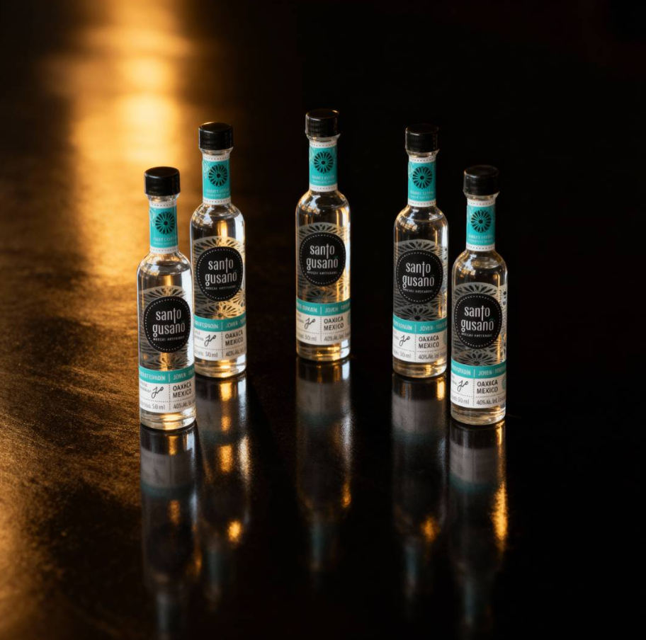 5 mini botellas de Mezcal Santo Gusano Joven 50ml